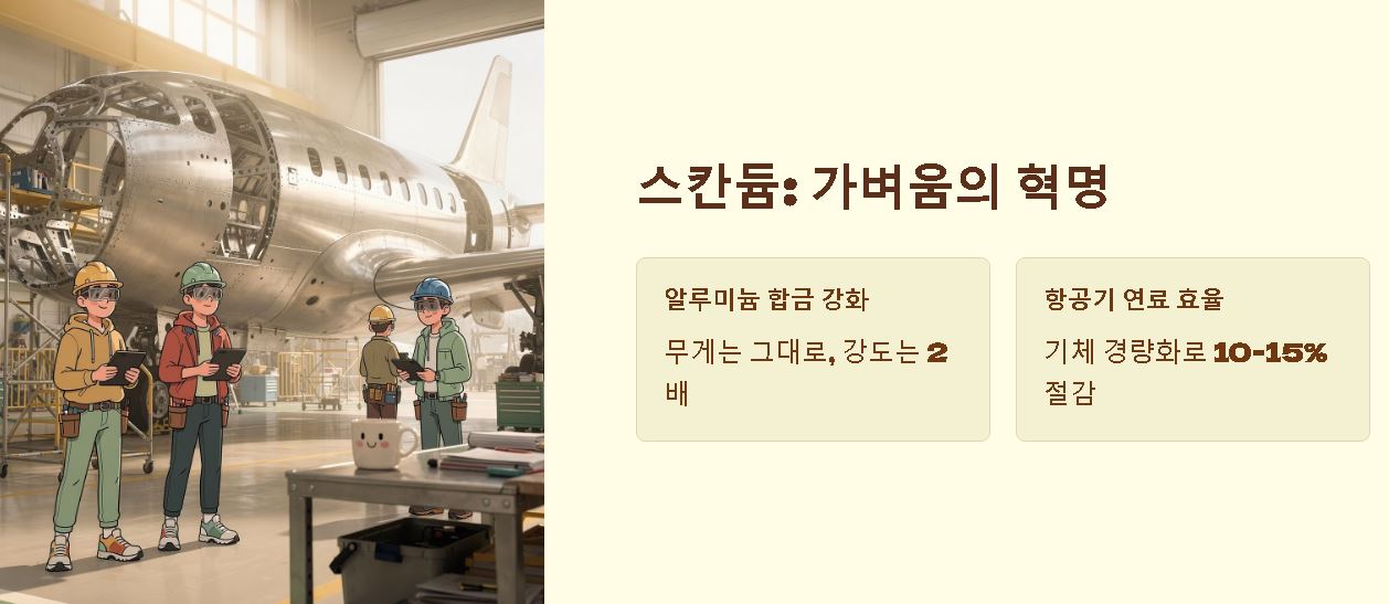- 항공기 부품: 스칸듐 합금은 기체를 가볍게 만들어 연료 효율을 높이는 데 기여합니다.