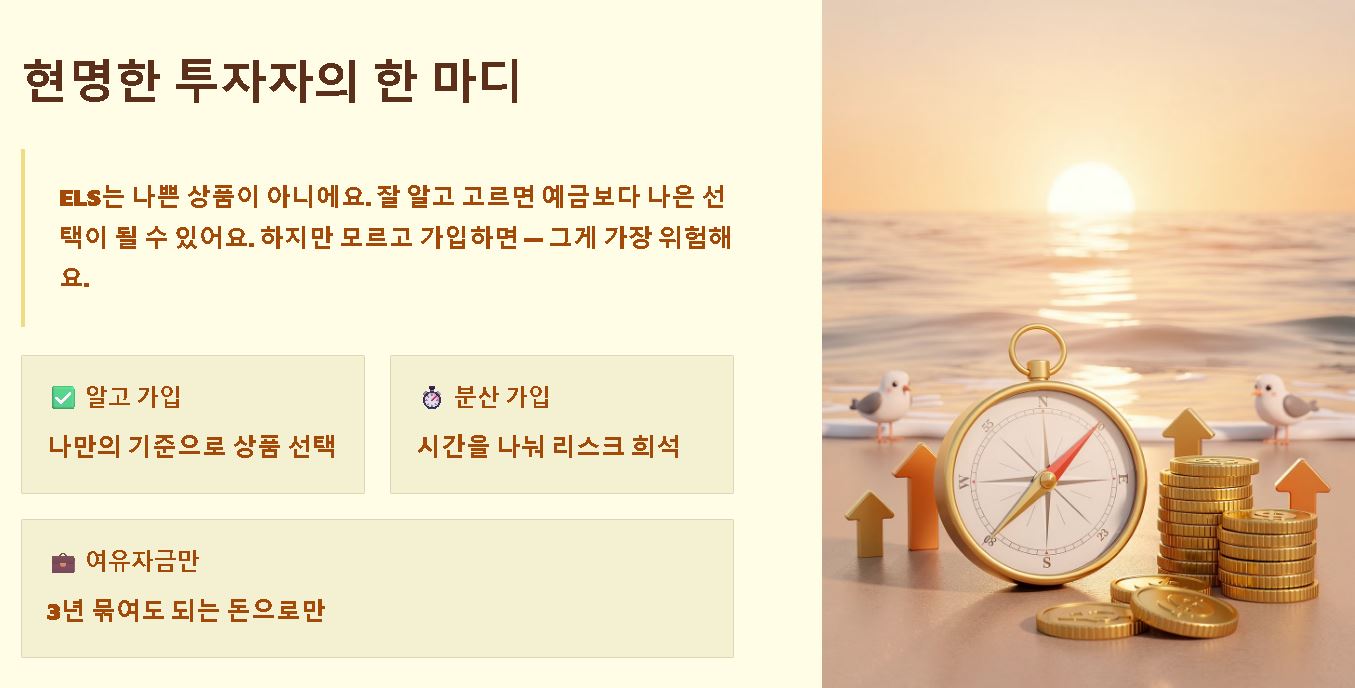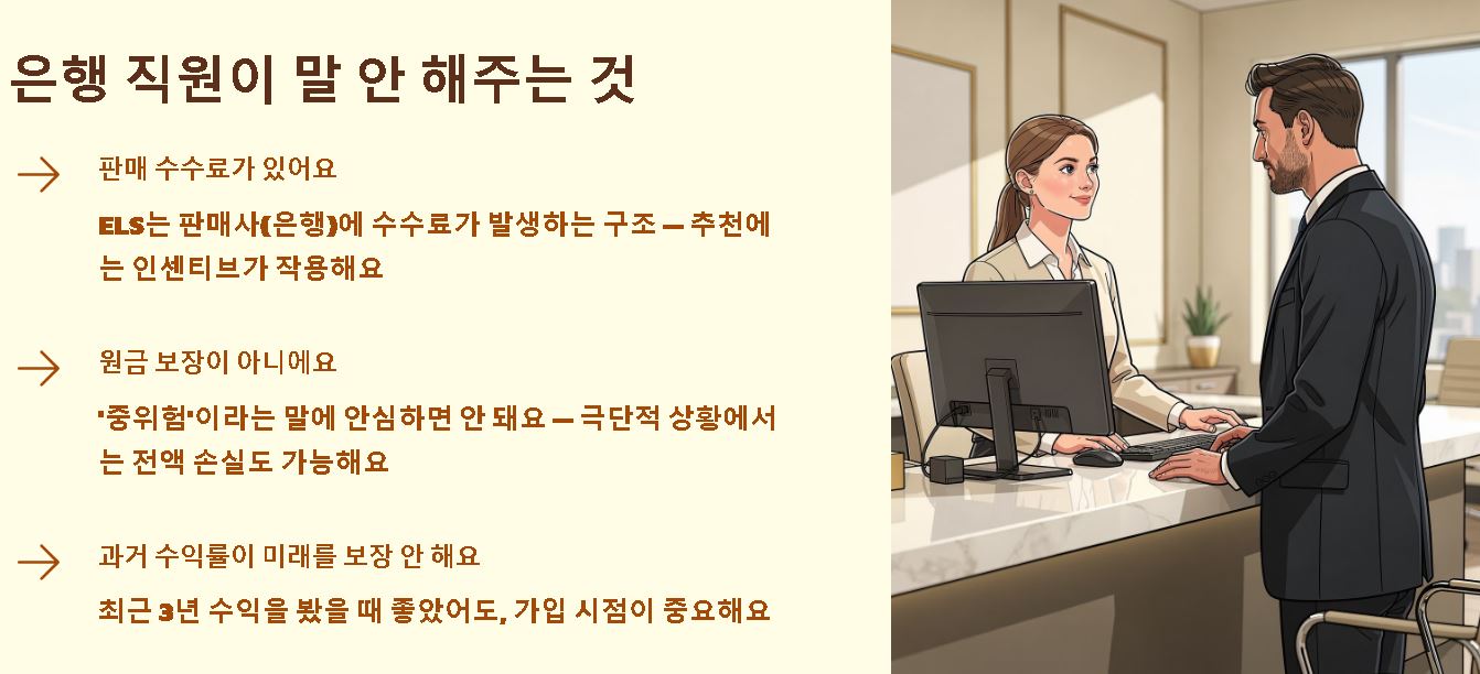 은행이나 증권사에 가면 '중위험 중수익'이라는 문구와 함께 ELS 상품 추천을 참 많이 받게 되는데요. 예금보다는 높은 수익을 기대할 수 있지만 원금 손실의 위험도 함께 가지고 있는 els란 뜻이 정확히 무엇인지, 투자 전 반드시 알아야 할 핵심만 정리해봤어요.