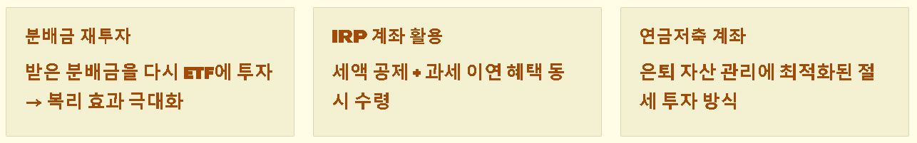 요약: 절세 혜택과 꾸준한 분배금 수익은 ETF 투자를 장기적인 재테크 수단으로 만드는 핵심 경쟁력입니다.
