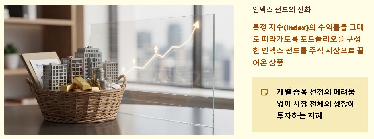 요약: ETF는 주식의 거래 편의성과 인덱스 펀드의 저비용·분산투자 장점이 결합된 하이브리드형 투자 상품입니다.